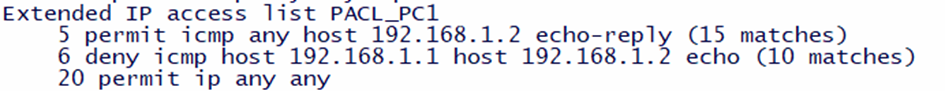 deny icmp host 192.168.1.1 host 192.168.1.2 echo