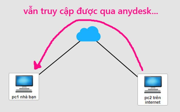 Nhưng khi bạn quan sát các phần mềm remote như Anydesk, Ultraviewer,... vẫn thấy người ta đứng từ ngoài chủ động remote vào máy mình được.