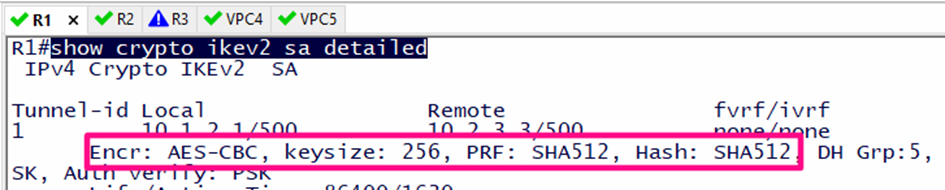 Bài này mình dùng kiểu flexVPN khai nhanh gọn hơn, để nếu khi công việc yêu cầu thì có bài tham khảo. Trong kiểu flexVPN site-to-site thì router sẽ tự chọn giải thuật mã hoá hộ mình.
