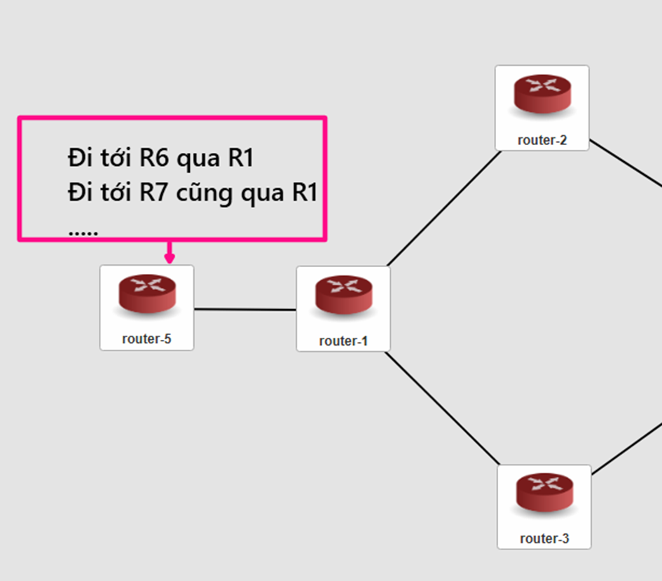 Khi từ router R5 muốn đi tới R6 chả hạn, thì người quản trị mạng sẽ cần cấu hình trên R5 là