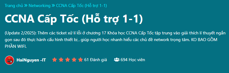 - Admin là người đã có 12 năm thực chiến triển khai mạng và quản trị mạng. Dạy dễ hiểu, tổng số lượng học viên hơn 1900 ccna, ccnp, wireshark, firewalll... (tính đến 10/2025), toàn bộ review đều 5 sao. XEM TẠI ĐÂY