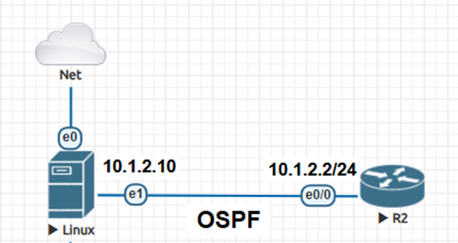 -Bước 1: Mình sẽ cài routing OSPF vào con linux trong hình. Sau đó cấu hình nó để bắt tay OSPF với router.