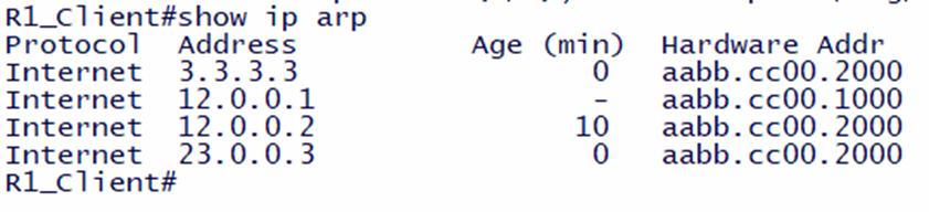 Còn khi mình xài IP nexthop thì mọi IP đích bên ngoài LAN của R1, cũng chỉ hiện 1 dòng ARP như này: